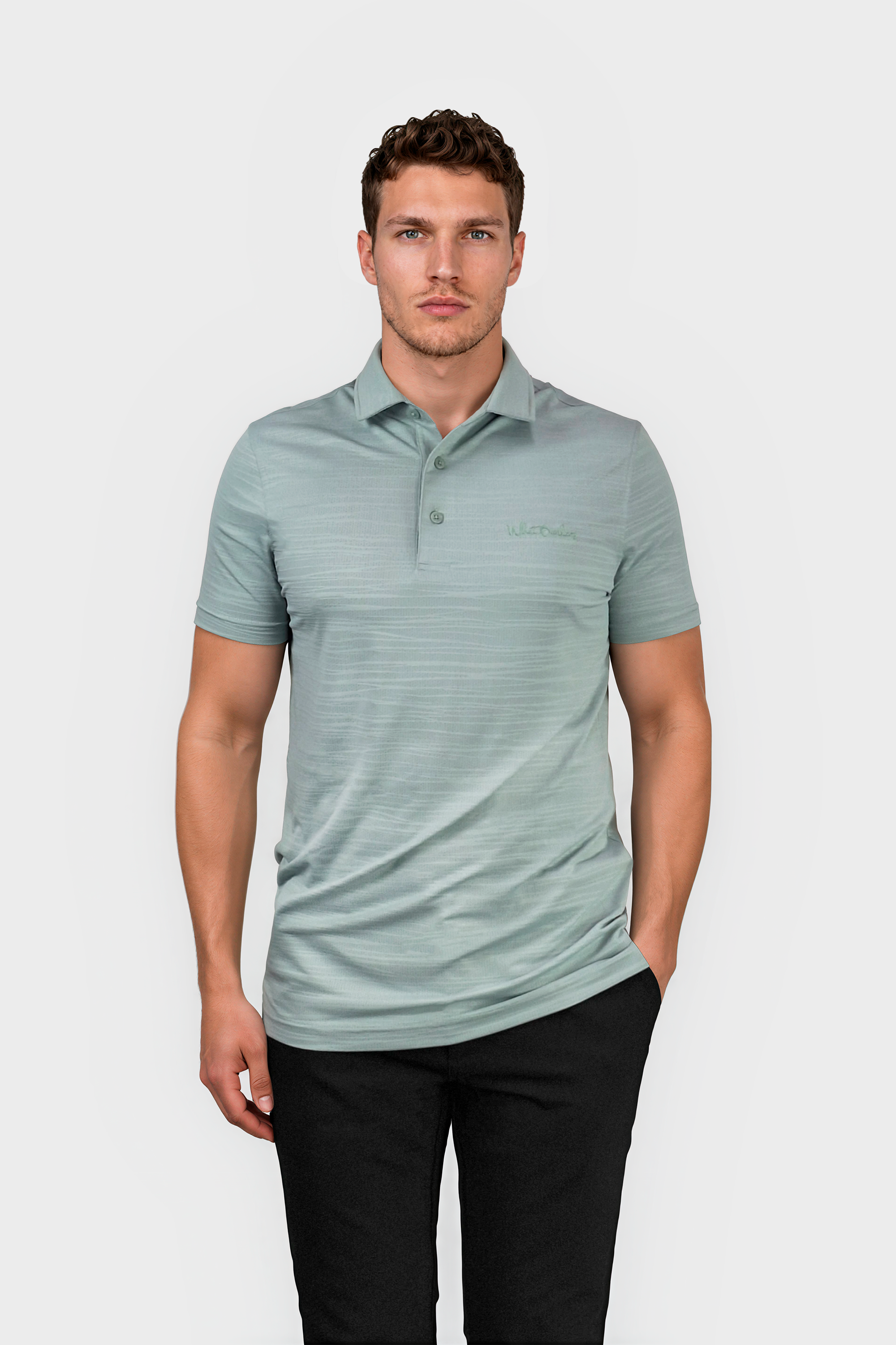 Enhance your golf game with the sleek and stylish WBLennox polo shirt in light green. Featuring a soft cut away collar for a touch of sophistication, and lightweight material for comfort and mobility.