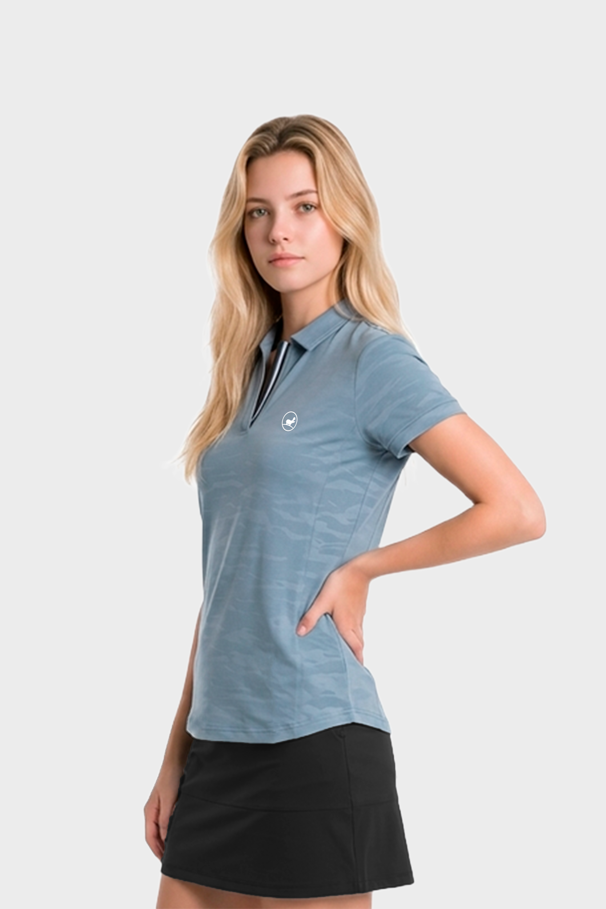 Elevate your style with the WBMaya Golf Polo Shirt in sky blue. The light textured design offers sophistication, while the striped rib placket detailing add a touch of elegance. Made with lightweight fabric for all-day comfort and breathability for the golfplaying lady.